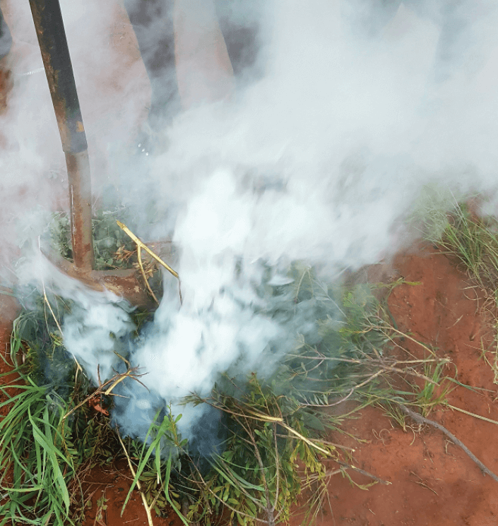 Harvesting yakula is probably the most difficult part of the process. Thick spikey spinifex grass is no fun to wander through in 45-degree heat. The ant nests are not visible to the untrained eye and leave trails of resin as clues to their whereabouts. Only a small amount is needed to produce a medicinal oil rich in aroma.